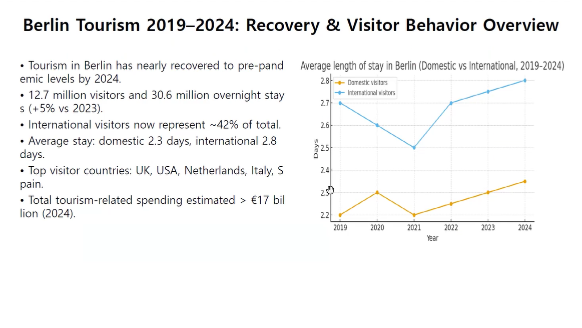 이러한 공간 재생의 배경에는 ‘가난한 도시 베를린’이라는 구조적 조건도 존재했다. 지방정부의 재정적 제약은 민간의 자율성을 막지 못하는 여지를 만들었고, 이로 인해 임대료 부담 없이 창작활동이 가능한 유휴공간들이 다양한 문화기획의 실험무대로 전환되었다. 베를린은 현재 유럽 내에서도 예술과 스타트업이 결합된 대표 도시로 성장하고 있으며, 관광 유발 경제효과는 17억 유로(2024년 기준)에 달하고 있다. 이는 예술과 공간, 경제가 유기적으로 작동할 때 지속가능한 도시 모델로 진화할 수 있음을 보여준다.
