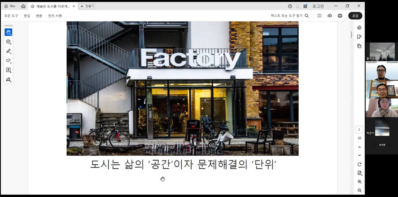 질의응답 시간에는 유휴공간을 카페 등 상업시설로 채우는 데 그치지 않고 지역 고유의 콘텐츠로 확장할 수 있는 조건에 대한 질문이 나왔다. 이에 하 센터장은 “모든 공간이 역동적일 필요도, 느림을 추구할 필요도 없다”며, 도시의 성격과 공간의 맥락에 맞는 다양한 실험이 필요하다고 응답했다. 또한 “기회는 연속성과 예측 가능성 안에서 가능해진다”며, 행정이 개입할 경우에도 자율성을 훼손하지 않는 방향에서 기획자나 창작자들이 지속적으로 활동할 수 있는 조건을 조성해야 한다고 강조했다.