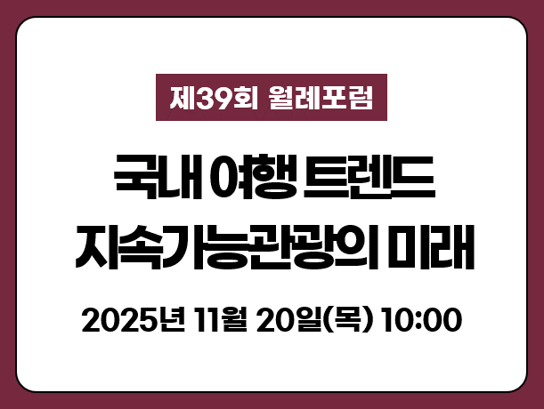 제39회 지속가능관광 월례포럼은 <2026 국내 여행 트렌드 – 지속가능관광의 미래>를 주제로 진행합니다.
