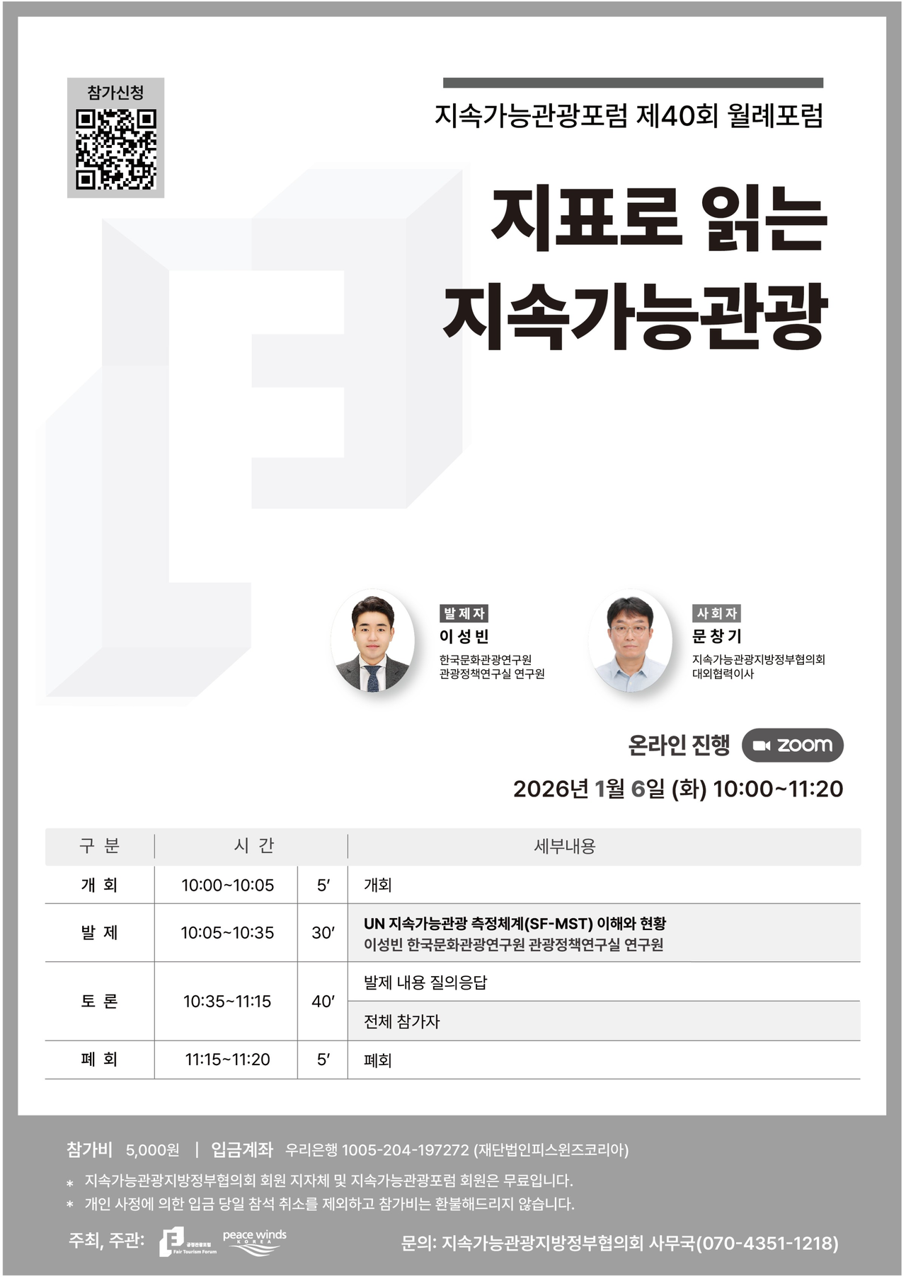 ㅇ(참 가 비) 5,000원 *지속가능관광지방정부협의회 회원 지자체 및 공정관광포럼 회원 무료